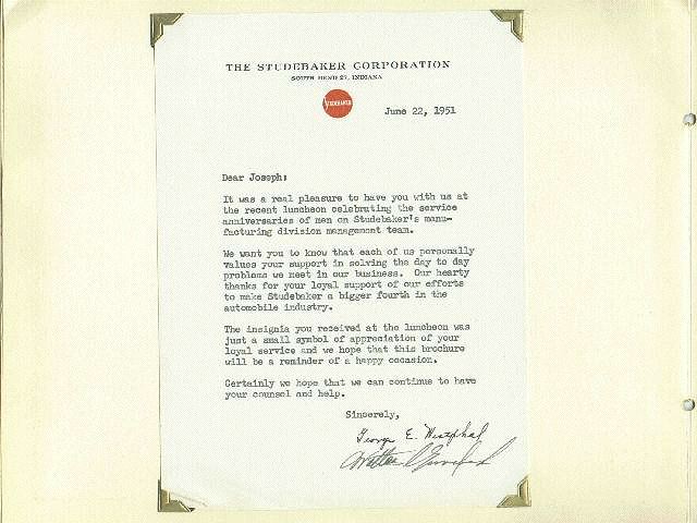 package he was given in 1951, his 30th year at Studebaker. Harold