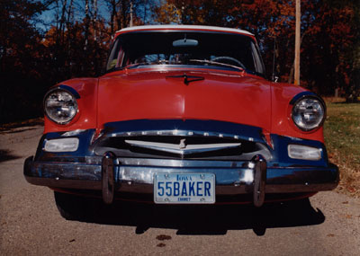 The 1950's were a decade of intense competition when customers expected new models every year. The model year change was so important that in 1956 Buick had the model year scripted on the trunk of some of its models. The cost of tooling to meet demand for this constant change was expensive. The "Big Three" automakers had such high sales volume that they could pay off their tooling costs within a year or so and begin making profits, but the smaller companies did not have that volume of sales so they tried to "facelift"models in most years to make them look new. That was bad news for the smaller independent car companies, but it is good news for Studebaker collectors today because many different models share so many parts in common. The cars in the photos below are all closely related to the first two cars shown, which are 1953 Commanders. Between 1953 and 1963, Studebaker changed the hoods, trunk, roof and dash board but the vast majority of parts on these cars are interchangeable. In addition to the 1953 Commanders, there is a 1957 Golden Hawk, a 1959 Silver Hawk and a 1962 GT Hawk.